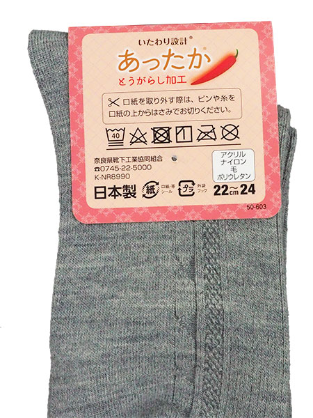 とうがらし加工で暖かい毛混の秋冬向き靴下。