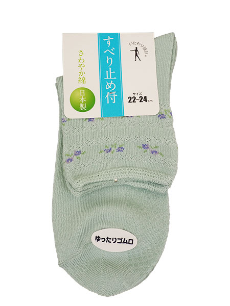 いたわり設計 婦人ソックス 小花ライン 滑り止め付き ゆったり口ゴム