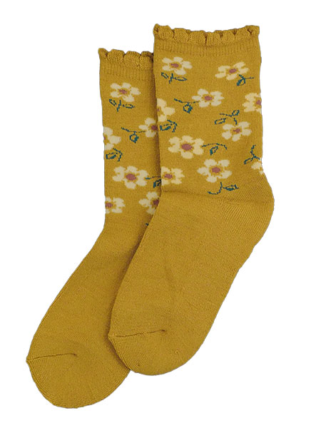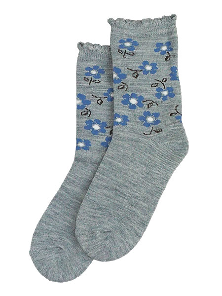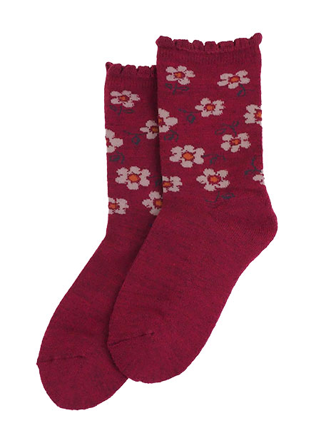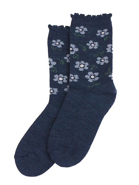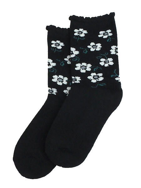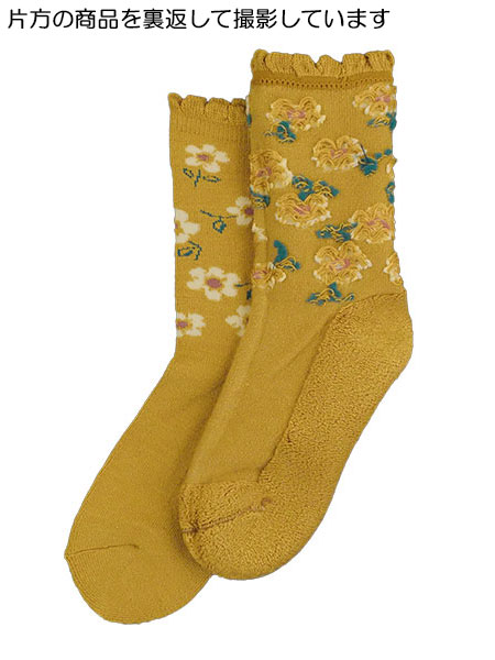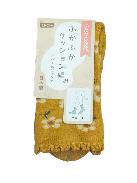 いたわり設計 婦人ソックス ふかふかクッション編み 花柄 クルー丈