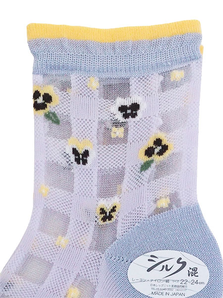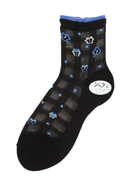 Telephone0.0 婦人 シルク混 シースルーソックス 花&格子柄