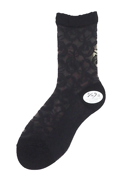 Telephone0.0 婦人 シルク混 シースルーソックス 花柄 ロング丈