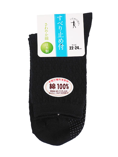 いたわり設計 婦人ソックス 滑り止め付き 織り柄 さわやか綿