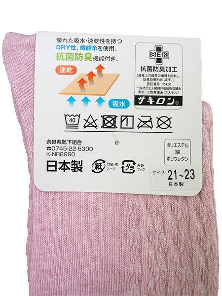 優れた吸水・速乾性をもつDRY性、機能糸を使用。抗菌防臭機能付き。