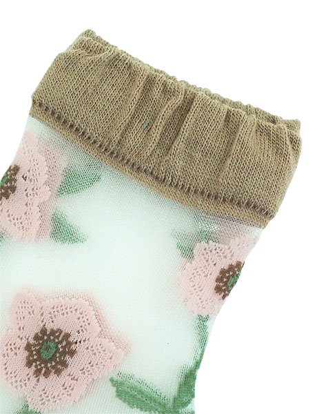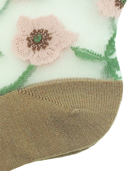 Telephone0.0 婦人カシミヤ混シースルーソックス つま先2重編み 花柄