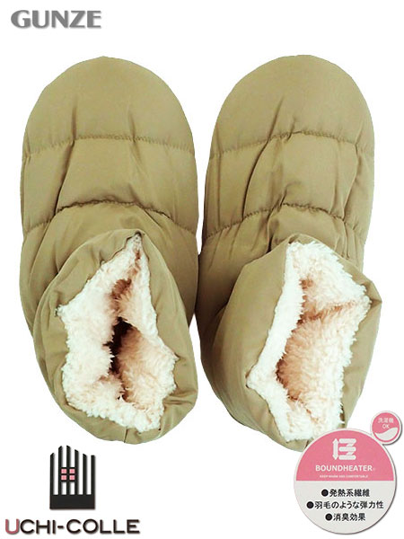 中綿に吸湿発熱繊維 BOUNDHEATER(バウンドヒーター)を使用した軽くて暖かいルームシューズ。