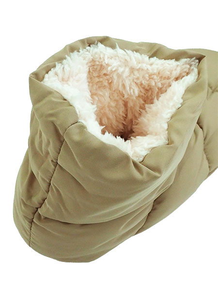 高い保温性を持つ発熱中綿が暖かさを長時間キープ、つま先まで肌側ボアたっぷり、足首まであったか。