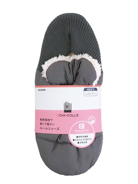 グンゼ ウチコレ 紳士ルームシューズ バブーシュタイプ 発熱素材 肌側ボア 無地