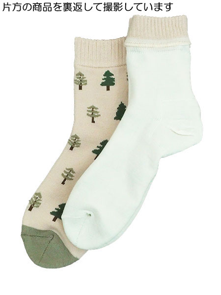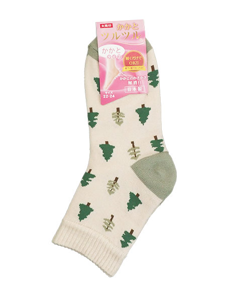 レディースのかかとカサカサ解消ソックス、靴下2重であったか、ツリー柄。