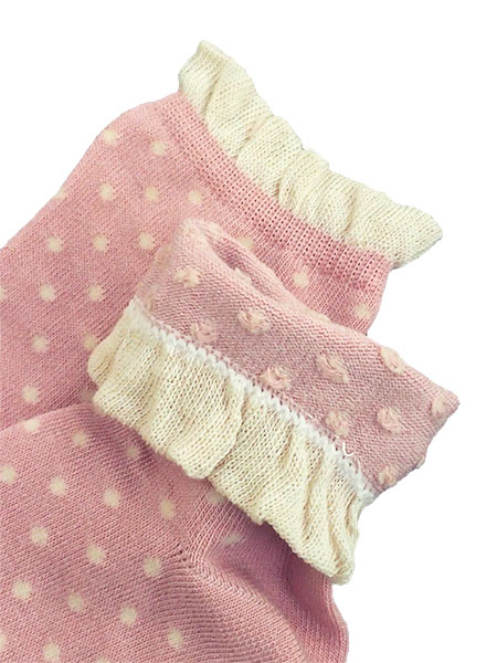 可愛らしいドット柄、さわやかな綿混の日本製靴下です。