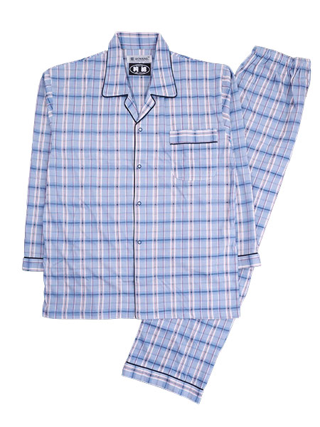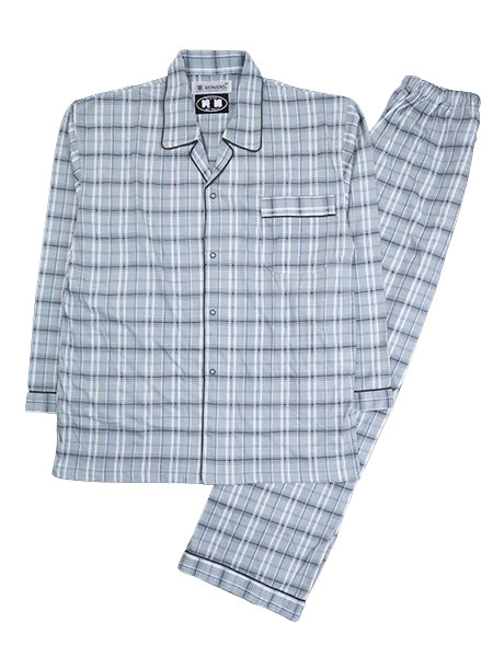 ロワンドのメンズ長袖パジャマ、綿100%天竺素材、チェック柄。