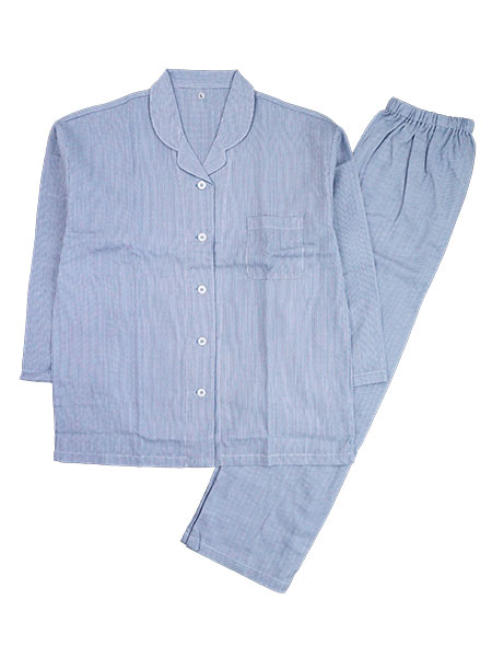 素材は春夏に適したWガーゼ素材を使用しています。ストライププリント。袖・足口ゴム通し穴付き。