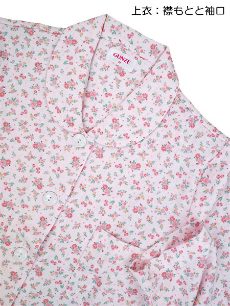 グンゼ 婦人長袖・長パンツパジャマ 大きめ釦 京都捺染 ソフトキルト 花柄 襟付き