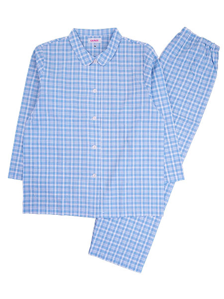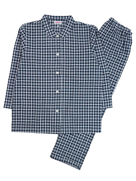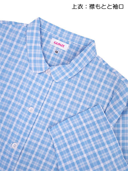 グンゼ LiRaku(リラク)婦人長袖・長パンツパジャマ チェック柄 綿100%先染サッカー 襟付き