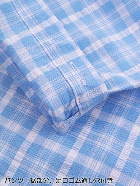 肌にやさしい綿100%、サラッと快適に過ごせる先染めサッカー素材を使用しています。