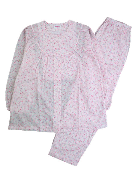 花柄プリント。袖・足口部分にゴム通し穴付き。