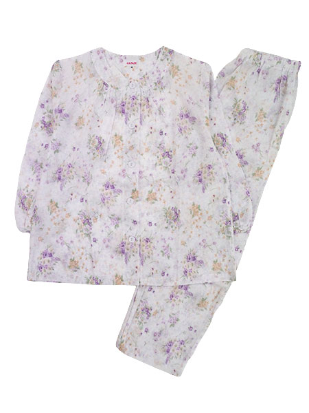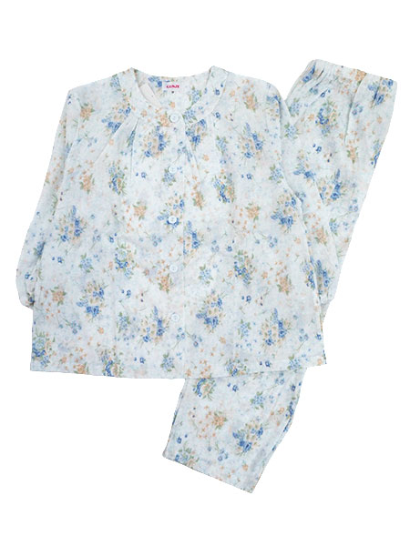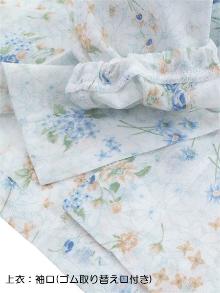 袖・足口ゴム通し穴付き。花柄プリント。