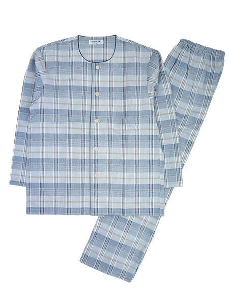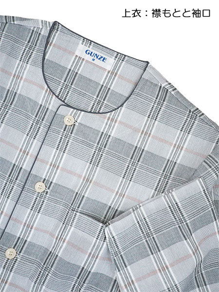 GUNZE(グンゼ)クールマジック 紳士長袖・長パンツパジャマ 襟なし 綿100%吸汗速乾 クレープ