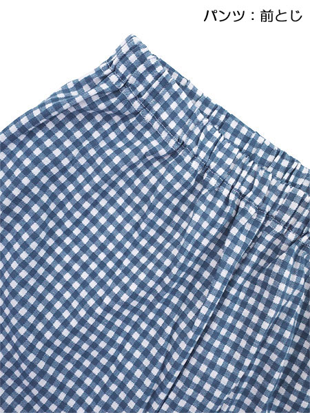 パンツ:前とじ、ポケットなし、ウエストゴム取り替え口付き。