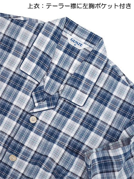 GUNZE、COOLMAGICのメンズパジャマ、サラッとさわやか吸汗速乾、チェック柄。