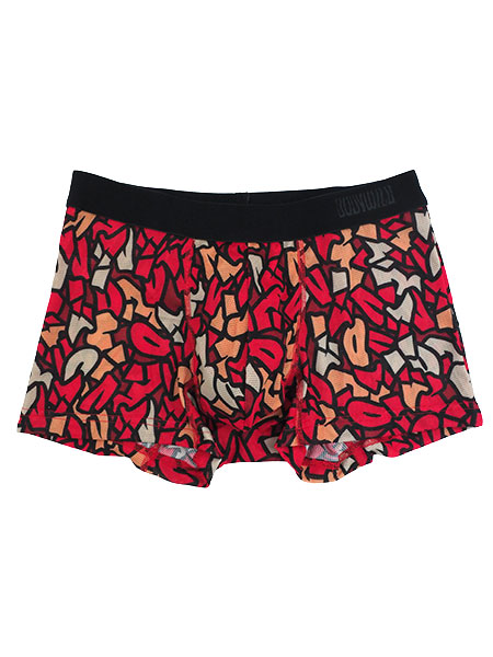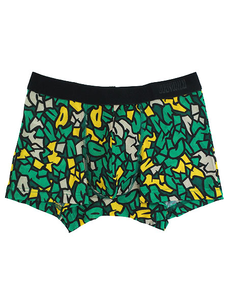 グンゼ、ボディワイルドのメンズボクサーブリーフ、前とじタイプ、ジオメトリックグラフィティ柄。